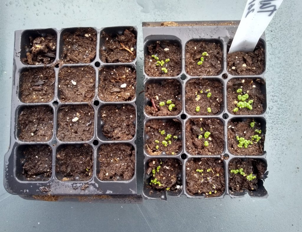Put the seeds on top of the soil. The seeds seem to do better on top rather than under the soil.