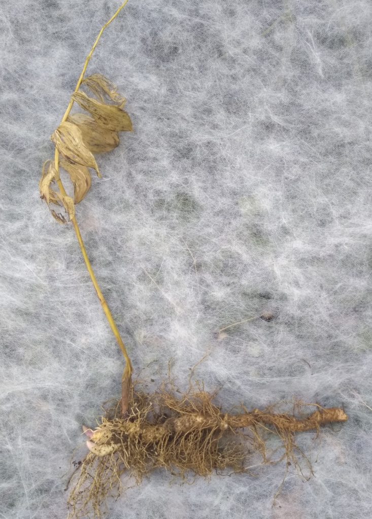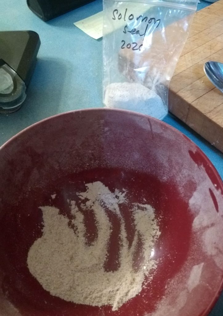Solomon seal roots are know for their tonic action on the joints. The roots look like joints. The roots are a visible example of the doctrine of signatures which states that a plant resembles the part of the body that it can heal. Solomon seal powder is included in many animal herbal recipes. The oil of the root helps alleviate aches and pains of joints when applied externally.