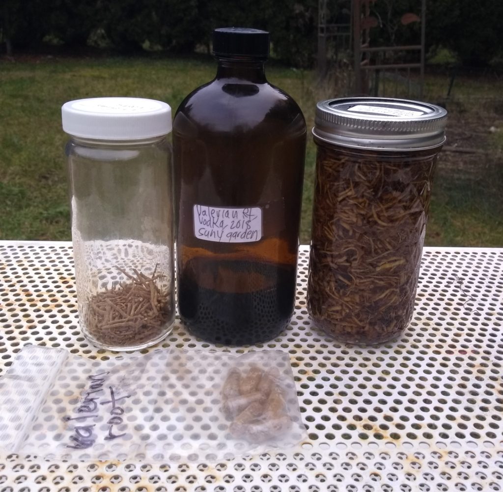 I use several valerian preparations: tinctures, dried root for tea ( although it is a root, do not simmer it, just treat it as a leaf) and powdered. Sometimes I put the powder in capsules.